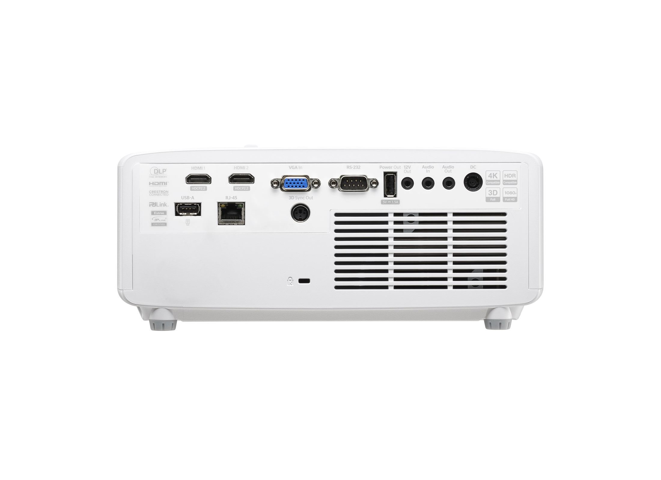 RS232 és RJ45 – vezérlés és hálózati integráció (pl. Crestron, Extron, AMX).